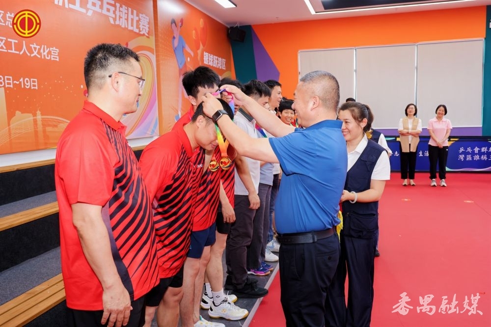 历经两天激烈角逐,赛事决出混合团体前8名及8个优秀组织单位,北片教育工会队、东环富豪居委工会队、番中医队水务铿锵乒劲昂扬队、大龙街企事业单位联队、规划和自然资源局队、番禺区税务局队、禺山高中1队分别获得前八名;8个优秀组织单位分别是:区人大常委会、区融媒联队,区总工会、党校联队,番禺路灯队、南村镇机关工会联队、市场监督管理局队、长隆集团队、番禺中心医院队、番盈新代表队。闭幕式上,区总工会领导为获奖队伍依次颁奖。