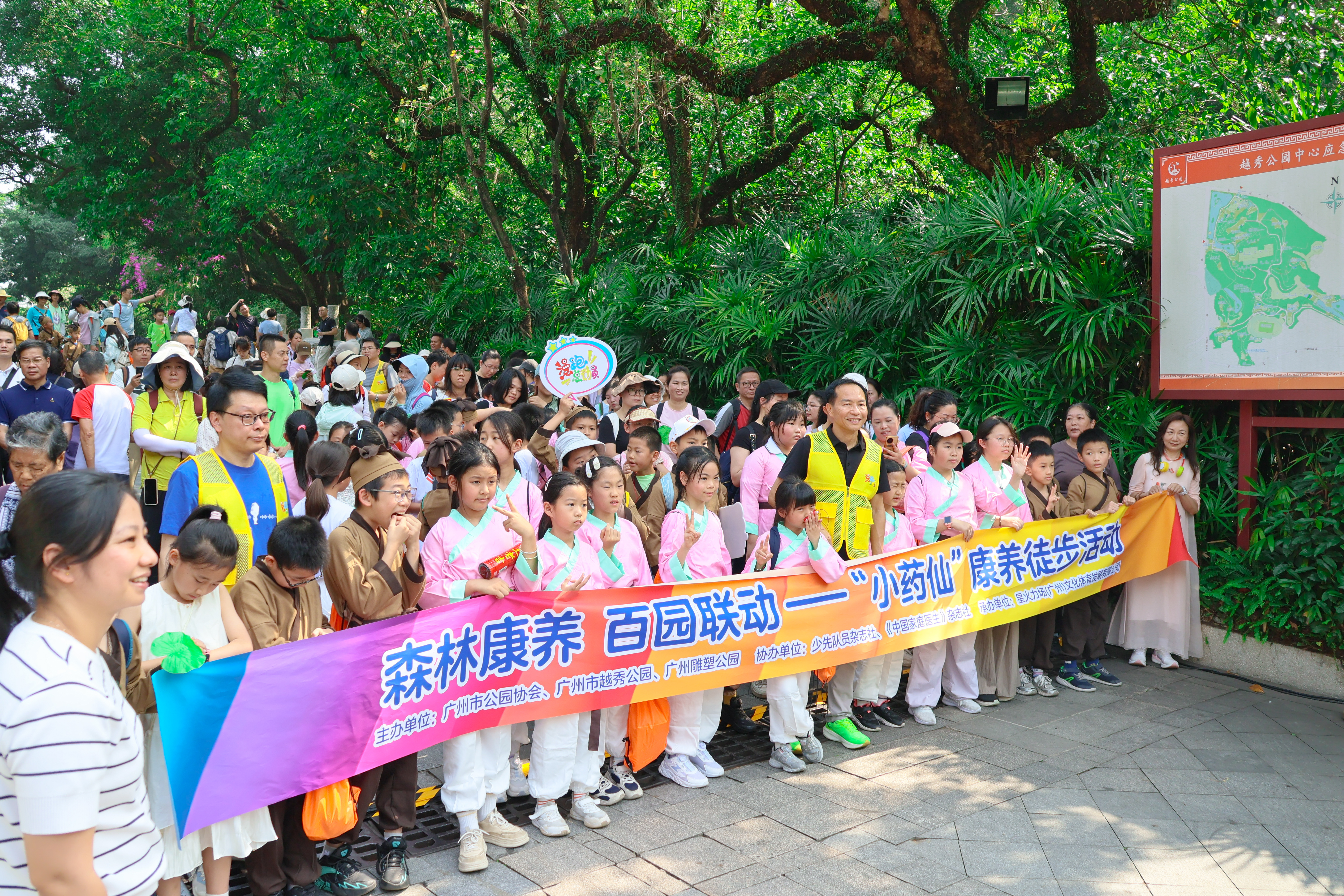 作为“森林康养 百园联动”系列活动之一,“小药仙康养徒步”活力开营。近百名小学生身着传统药仙服饰,从越秀公园正门广场启程,沿云道徒步识药、赏景研学,在自然山野间认识草木、初识中医药文化,一路学有所获。活动沿途设置能量补给站,为孩子们提供饮品与文创礼品,让徒步之旅兼具运动乐趣与文化收获。