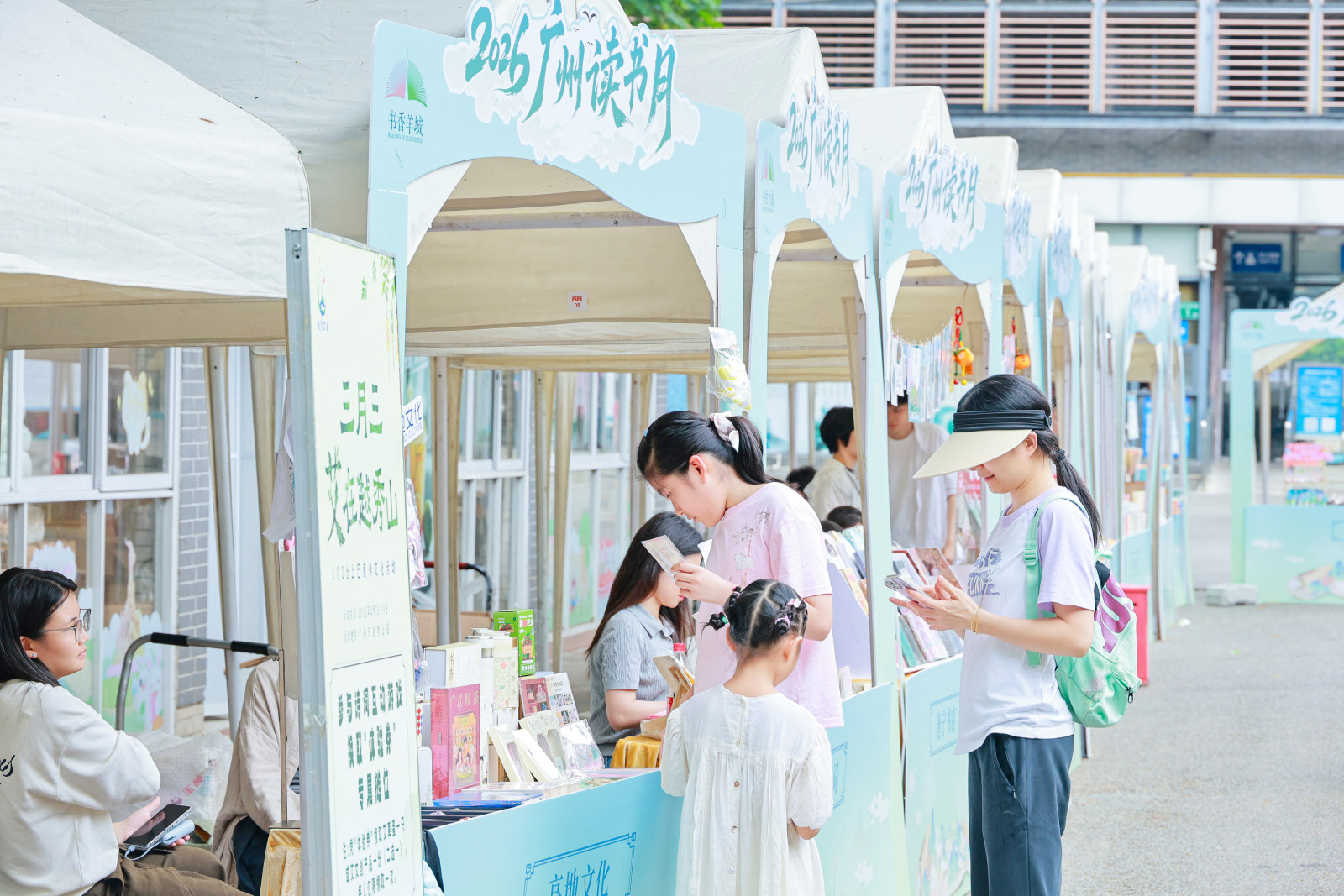 新时代文明实践站广场上,2026广州读书月特色摊位让越秀山成为春日里最雅致的“户外书房”。