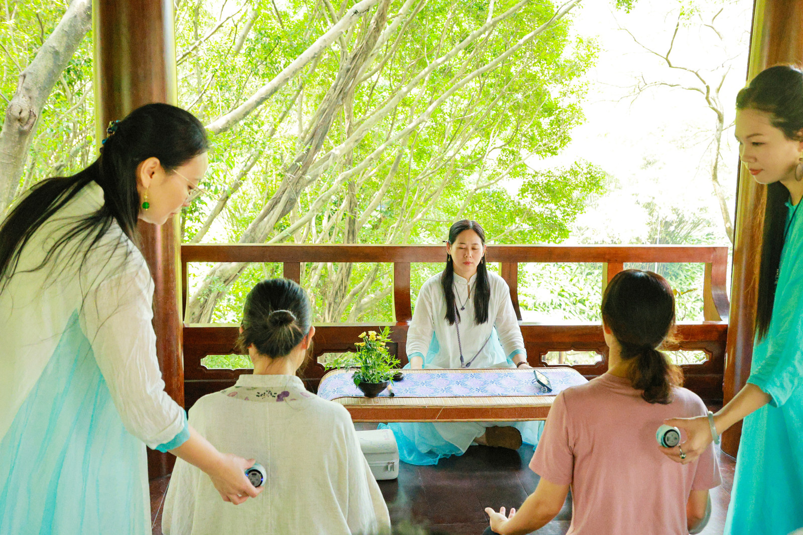 作为活动核心亮点,艾文化深度体验区更将艾香魅力展现得淋漓尽致。依托园林亭阁,分别打造非遗文创体验、艾茶品鉴、艾香手作、吟诗品茗、艾灸理疗五大沉浸式项目。市民亲手制作艾草香囊与艾草膏,在艾香中触摸传统手作温度;在亭台之间煮水烹茶,品味艾茶清润回甘的独特风味;艾灸体验区前人流不断,专业技师现场施灸。市民在山水之间、悠悠艾香之中,沉浸于“视、听、嗅、味、触”全方位体验,与千年艾文化完成一场温暖的深度对话。